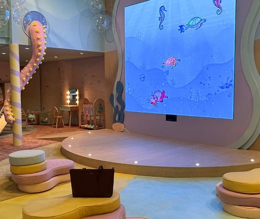 Eleve a experiência do público com exibição de vídeos, promoções e apresentações.